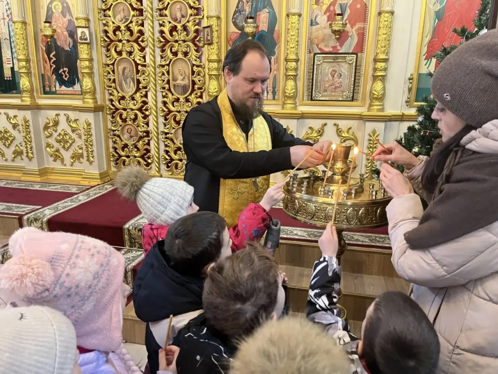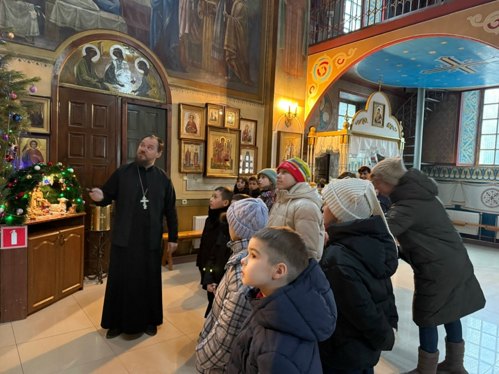 Встречал ребят настоятель храма иеромонах Пимен (Колесников). В уютной и доброжелательной атмосфере отец Пимен рассказал детям не просто об историческом событии, произошедшем более двух тысяч лет назад, но о его глубочайшем внутреннем смысле для каждого человека. Ребята услышали о таких важных для подрастающего человека понятиях, как надежда, любовь, смирение и радость, которые несёт с собой этот Праздник.